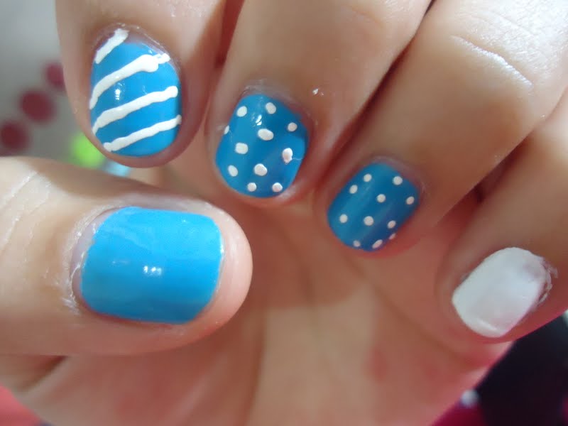 Nothing interesting to do today and decided to paint my nails with polka dots and stripes. I used Orly blue collar and Nail dot pen from face shop :)
